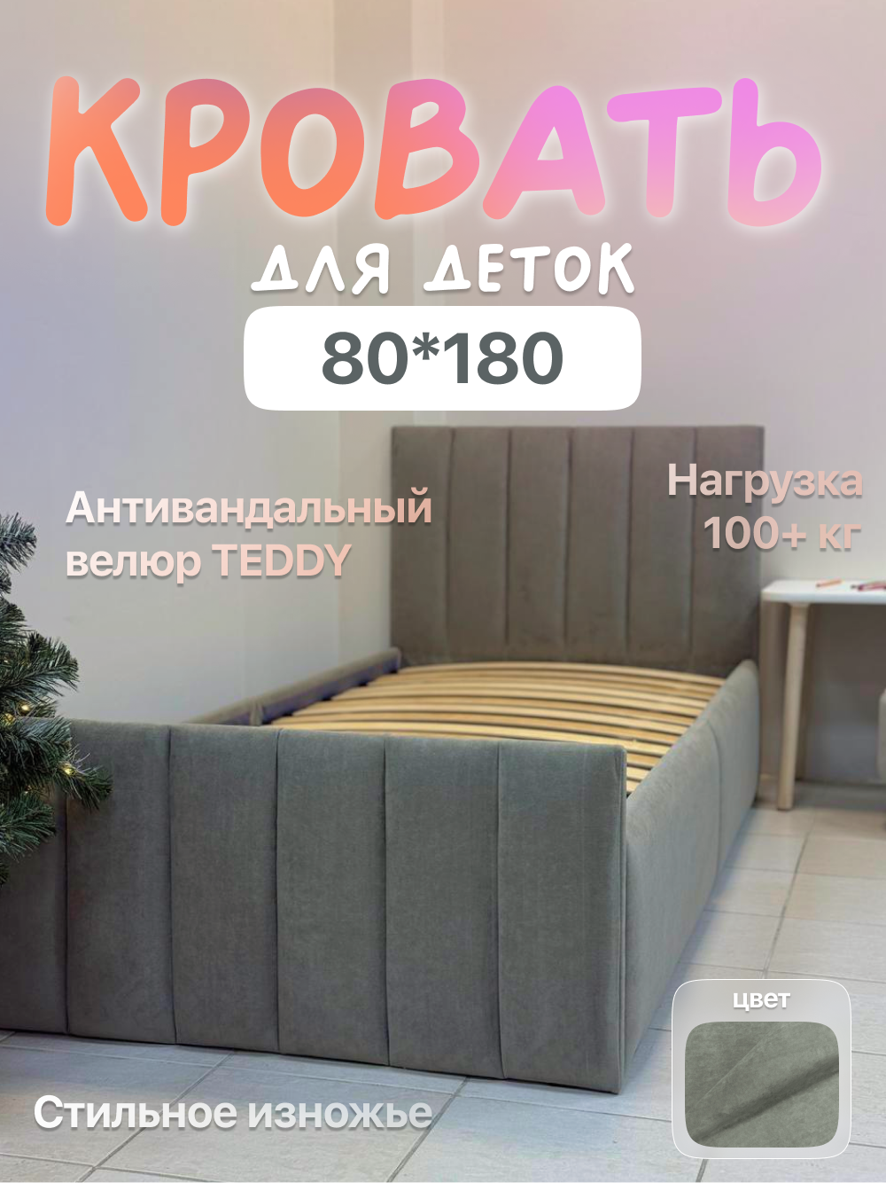 Детская мягкая кровать 80×180 см | Mebies Home