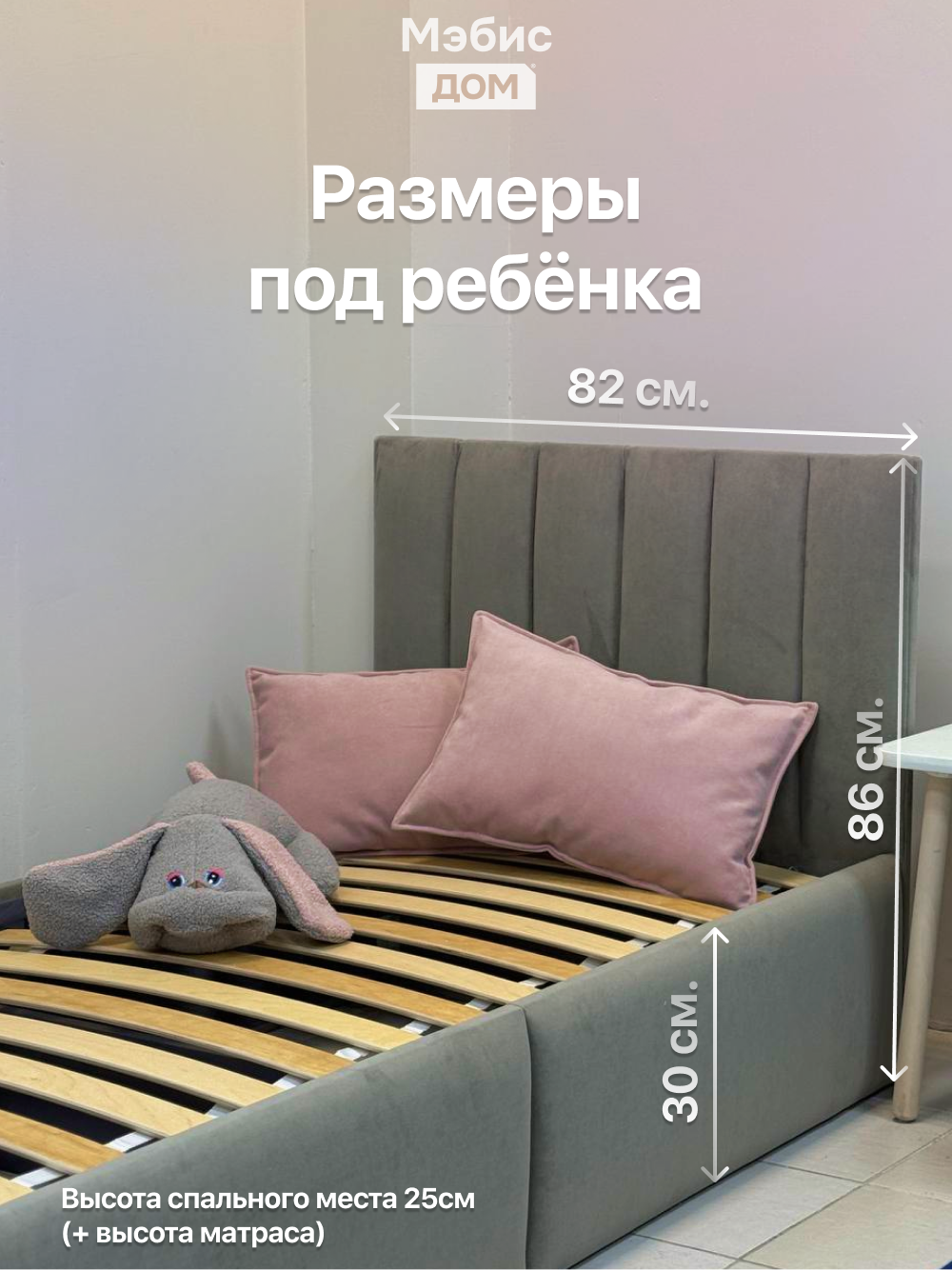 - Высота спального места: 25 см + матрас