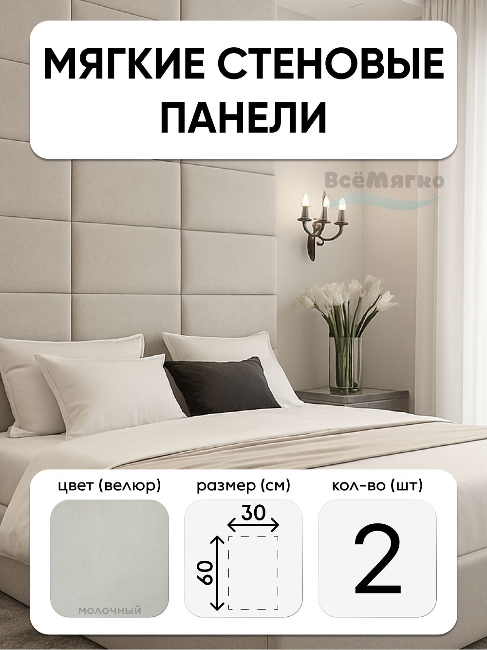 Мягкие панели; Стеновая панель; Изголовье для кровати 30х60см, 2 шт в комплекте – купить за 3 460 ₽ | Мэбис Дом | Детские и двуспальные кровати на заказ в Тюмени 🛏 Любой размер | Тюменский производитель